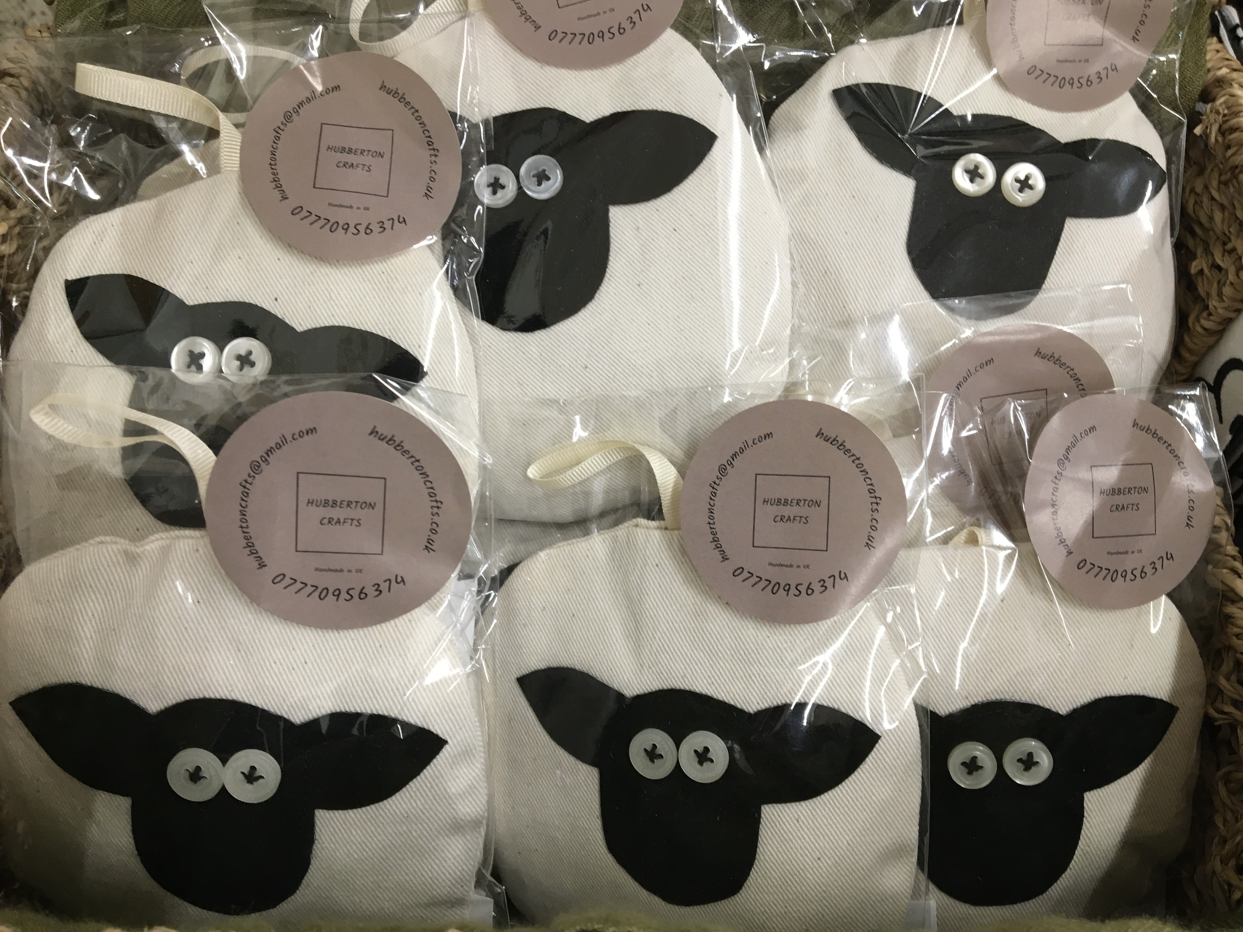 Made from 100% cotton calico fabric with a suede/leather head and polyester ribbon legs. Also has a ribbon hanger and button eyes. The lavender aroma can be maximised by “fluffing” up the bag like a pillow regularly. The lavender aroma will fade with time but a few drops of essential lavender oil can be impregnated onto the sachet to extend the life of the characterful sheep!